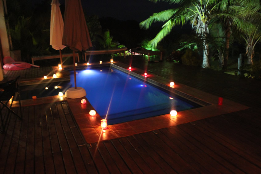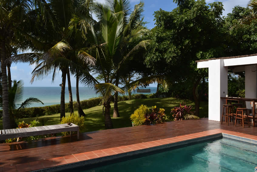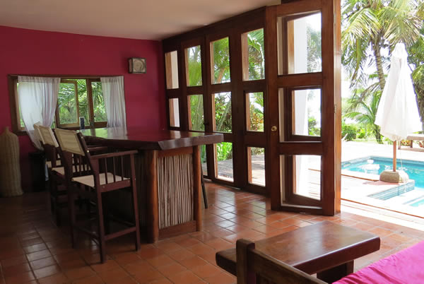 Bar & inside dining area leading on to pool deck with outdoor bar and entertaining area. All with a delightful vista of the Indian Ocean through an established palm grove.