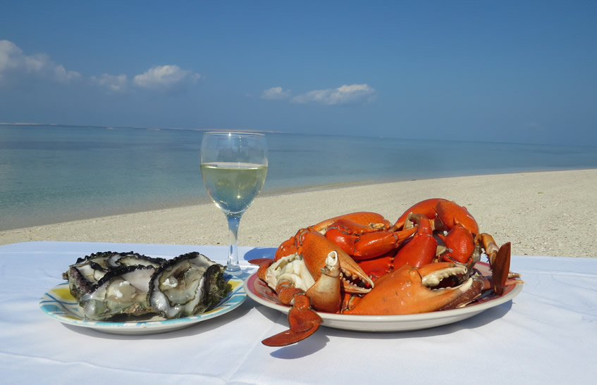 An excellent Choice of seafood is readily available off the dhows or from the fisherman on the beach.